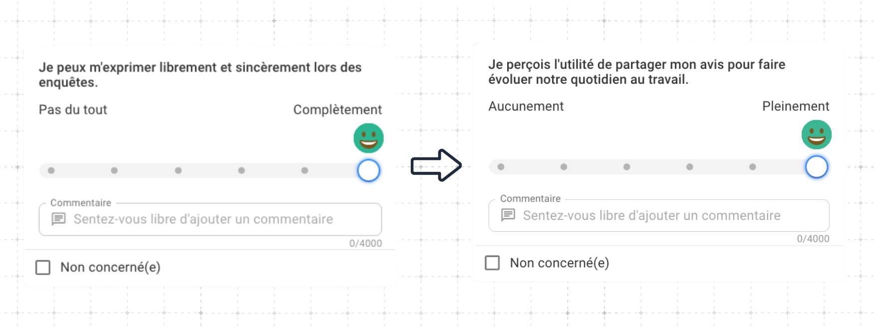 • Une analyse en temps réel : Plus besoin d'attendre. Dès les premières réponses, vos tableaux de bord s'actualisent. Vous captez immédiatement la météo sociale de votre entreprise et analysez les verbatims ouverts en un clin d'œil.